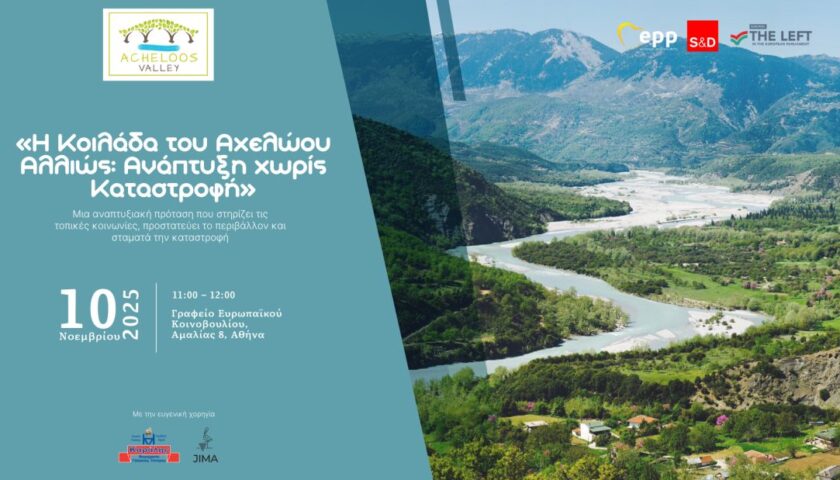 Μια νέα προοπτική για την ανάπτυξη της Κοιλάδας του Αχελώου αναδεικνύεται τη Δευτέρα 10 Νοεμβρίου 2025, στις 11:00, στο Γραφείο του Ευρωπαϊκού Κοινοβουλίου στην Ελλάδα (Λεωφ. Αμαλίας 8, Σύνταγμα), μέσα από την εκδήλωση με τίτλο: «Η Κοιλάδα του Αχελώου Αλλιώς: Ανάπτυξη χωρίς καταστροφή.» Μια πρωτοβουλία συνεργασίας Πολιτών, Θεσμών και Ευρώπης για το μέλλον της Ορεινής Υπαίθρου. Μια αναπτυξιακή πρόταση που στηρίζει τις τοπικές κοινωνίες, προστατεύει το περιβάλλον και σταματά την καταστροφή. Η εκδήλωση διοργανώνεται από την Πρωτοβουλία Πολιτών και Φορέων για την Προστασία και Ανάδειξη της Κοιλάδας του Αχελώου, με τη στήριξη των Πολιτικών Ομάδων του Ευρωπαϊκού…
