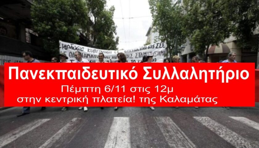 ΠερισσότεραΠανεκπαιδευτικό Συλλαλητήριο Πέμπτη 6/11 στις 12μ στην κεντρική πλατεία! της Καλαμάτας